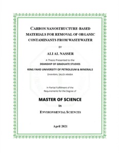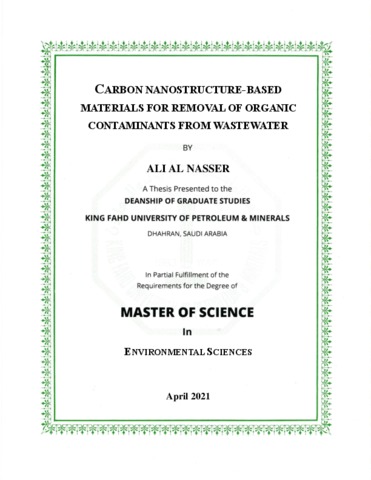 CARBON NANOSTRUCTURE-BASED MATERIALS FOR REMOVAL OF ORGANIC CONTAMINANTS FROM WASTEWATER. Masters thesis, King Fahd University of Petroleum and Minerals.
