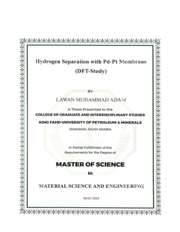 Hydrogen Separation with a Pd-Pt Membrane. Masters thesis, King Fahd University of Petroleum and Minerals.