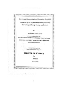 Growth and Characterization of Chromium Oxynitride Thin Films by RF Magnetron Sputtering for Energy Harvesting and Energy Storage Applications. Masters thesis, King Fahd University of Petroleum and Minerals.
