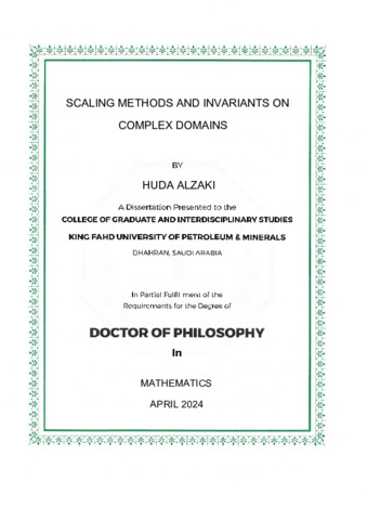 Scaling Methods and Invariants on Complex Domains. PhD thesis, King Fahd University of Petroleum and Minerals.
