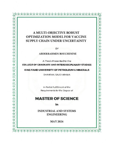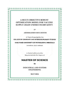 A MULTI-OBJECTIVE ROBUST OPTIMIZATION MODEL FOR VACCINE SUPPLY CHAIN UNDER UNCERTAINTY. Masters thesis, King Fahd University of Petroleum and Minerals.