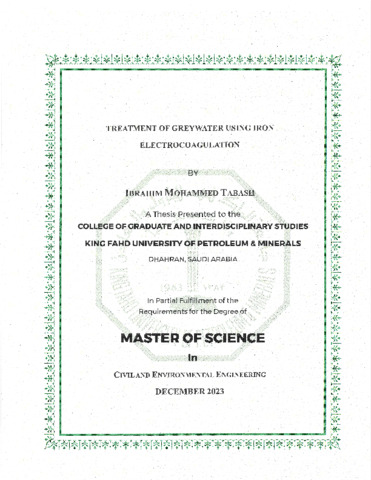 TREATMENT OF GREYWATER USING IRON ELECTROCOAGULATION. Masters thesis, King Fahd University of Petroleum and Minerals.
