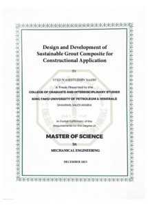 Design and Development of Sustainable Grout Composite for Constructional Application. Masters thesis, King Fahd University of Petroleum and Minerals.