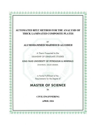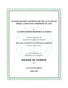 AUTOMATED RITZ METHOD FOR THE ANALYSIS OF THICK LAMINATED COMPOSITE PLATES. Masters thesis, King Fahd University of Petroleum and Minerals.