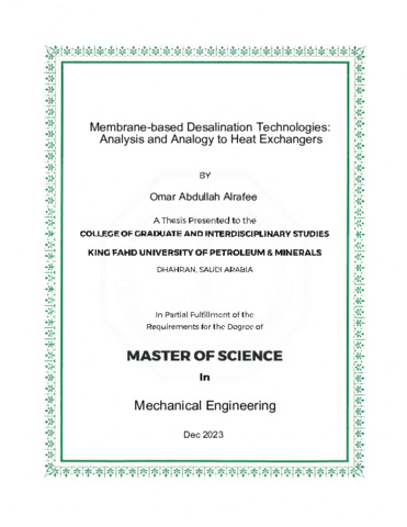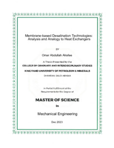 Membrane-based Desalination Technologies: Analysis and Analogy to Heat Exchangers. Masters thesis, King Fahd University of Petroleum and Minerals.