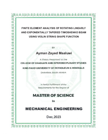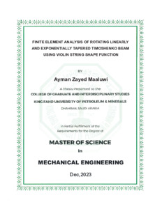 Finite element analysis of rotating linearly and exponentially tapered Timoshenko beam using violin string shape function. Masters thesis, King Fahd University of Petroleum and Minerals.