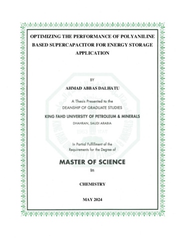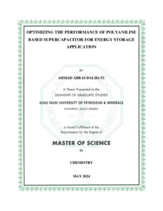 OPTIMIZING THE PERFORMANCE OF POLYANILINE BASED SUPERCAPACITOR FOR ENERGY STORAGE APPLICATION. Masters thesis, King Fahd University of Petroleum and Minerals.