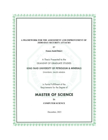 A Framework for The Assessment and Improvement of Zero-Day Security Attacks. Masters thesis, King Fahd University of Petroleum and Minerals.