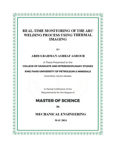 REAL-TIME MONITORING OF THE ARC WELDING PROCESS USING THERMAL IMAGING. Masters thesis, King Fahd University of Petroleum and Minerals.