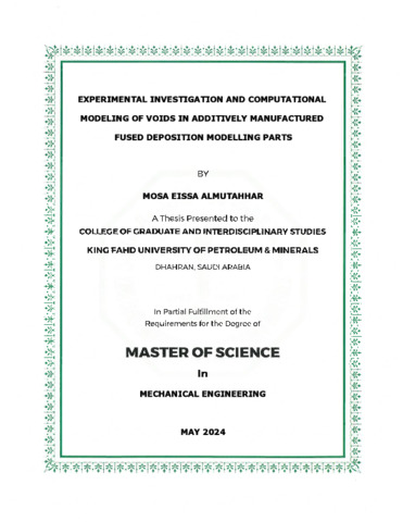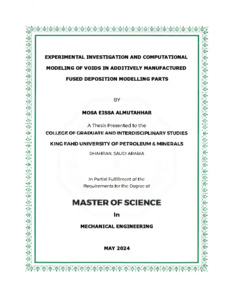 EXPERIMENTAL INVESTIGATION AND COMPUTATIONAL MODELING OF VOIDS IN ADDITIVELY MANUFACTURED FUSED DEPOSITION MODELLING PARTS. Masters thesis, King Fahd University of Petroleum and Minerals.
