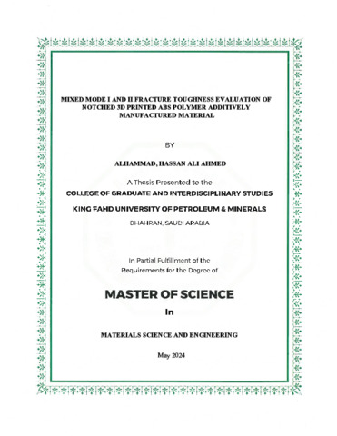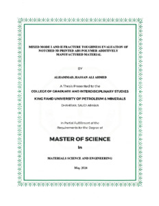 Mixed Mode I AND II Fracture Toughness Evaluation of Notched 3D Printed ABS Polymer Additively Manufactured Material. Masters thesis, King Fahd University of Petroleum and Minerals.