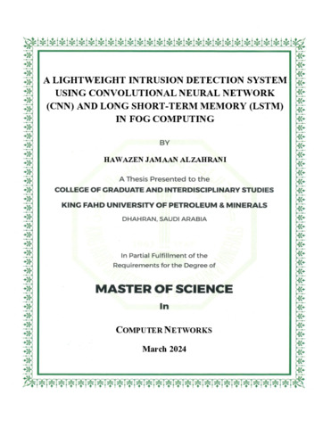 A lightweight intrusion detection system using convolutional neural network CNN and long short-term memory LSTM in fog computing. Masters thesis, King Fahd University of Petroleum and Minerals.