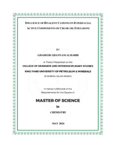 Influence of bivalent cations on interfacial active components of crude oil emulsions. Masters thesis, King Fahd University of Petroleum and Minerals.