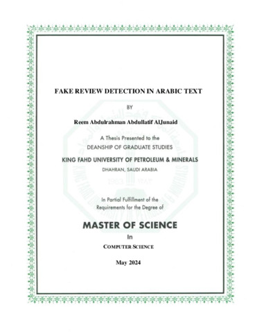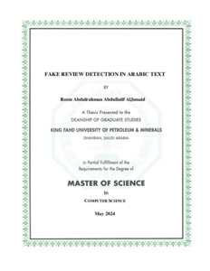 Fake Review Detection in Arabic Text. Masters thesis, King Fahd University of Petroleum and Minerals.